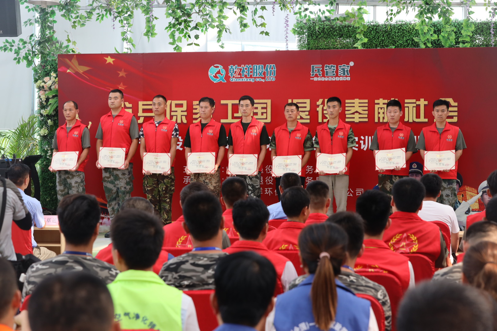 青岛市退役军人事务局就业创业处副处长卞冬珍、山东乾祥环保科技股份有限公司董事长高伟先生、山东乾祥环保科技股份有限公司总经理王基道先生、山东乾祥环保科技股份有限公司旗下兵管家事业部总经理徐兆林先生、首期兵管家全体学员以及来自全国二十多个省市的乾祥新老客户共同参加了本次结业活动。